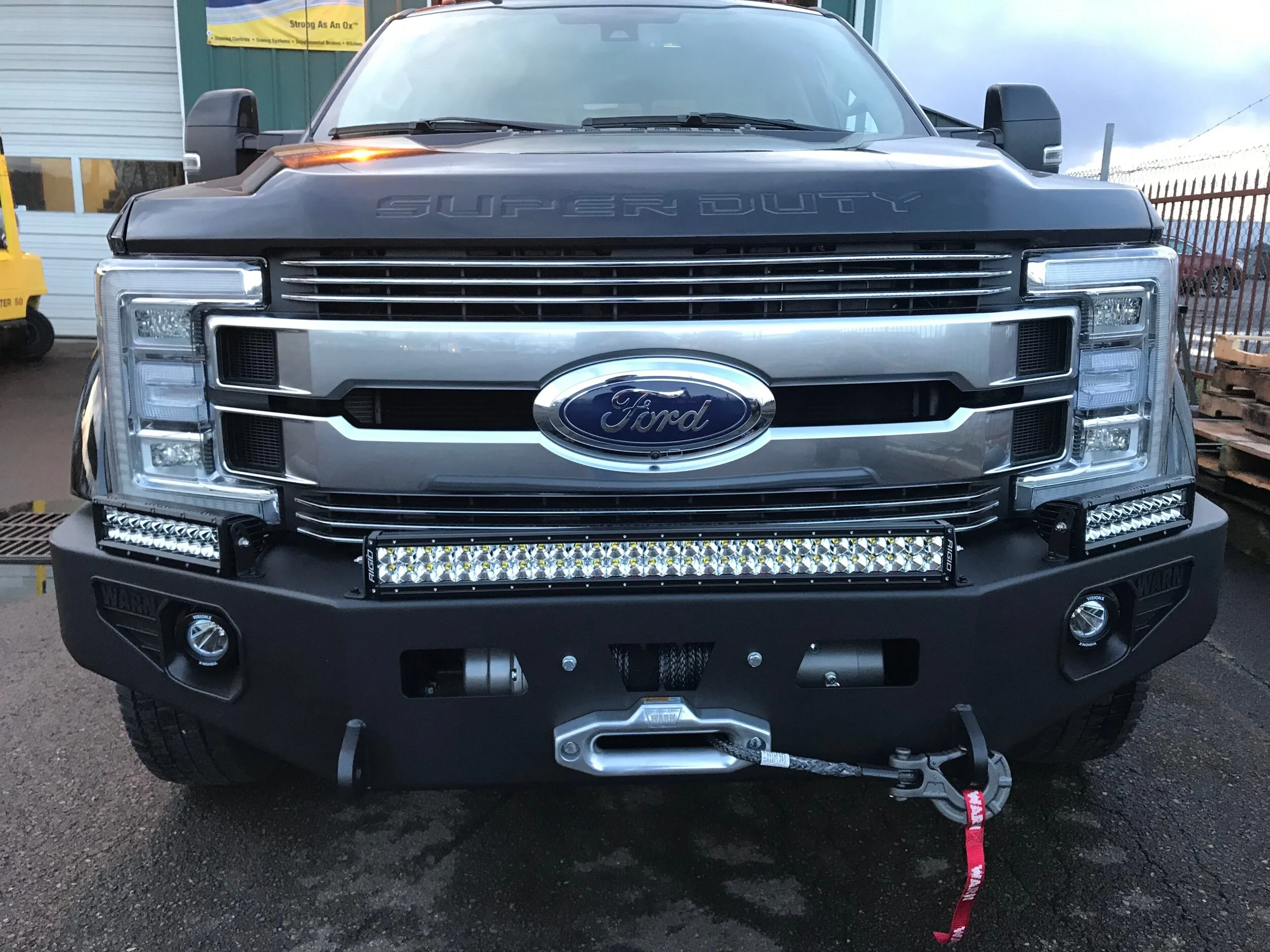 Warn HD Bumper 99395 - Warn M12 Winch 97720 - Vision X Round Flood Lights OPR160KIT - Rigid 30” LED Light Bar 130113 - Rigid 10” LED Light Bar 110113 - Adaptive Cruise Control Relocation Bracket